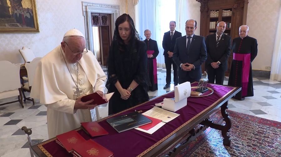 El encuentro tuvo lugar en la Biblioteca del Palacio Apostólico, donde el Sumo Pontífice recibe habitualmente a los jefes de Estado. Todo se desarrolló en un clima muy amable, hasta cariñoso. La Vicepresidente de la Nación conocía a Jorge Bergoglio, de sus tiempos como Arzobispo de Buenos Aires, y luego lo había visto una vez, ya como Papa, en 2014. Lo vio bien de salud y Francisco estuvo incluso de pie buena parte del encuentro, como se aprecia en las fotografías.